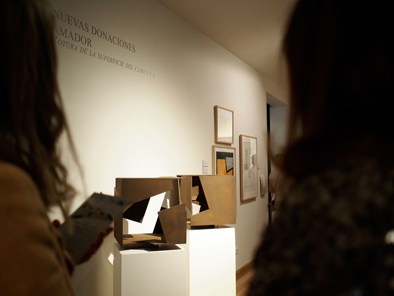 De las obras elegidas, las dos esculturas, que forman parte de una serie algo más amplia, pertenecen a la colección del propio Museo Evaristo Valle, después de sendas donaciones de particulares, y constituyen junto con la póstuma: Monumento a las Brigadas Internacionales, las últimas formas definitivas que el magistral Amador incorporó a su estricto y conciso mundo tridimensional. El collage, la serigrafía y el dibujo que completan el conjunto, que han sido cedidos para la ocasión por el Museo Casa Natal de Jovellanos, comparten con las anteriores similar impulso armónico, semejante principio praxiológico e idéntico fundamento constructivo.