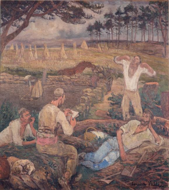 El descanso, c. 1919, procedente de una colección particular, es una obra que compendia las facetas de Evaristo Valle como pintor renovador de la imagen de Asturias e intelectual comprometido con el regeneracionismo de su tiempo.  [ver+]